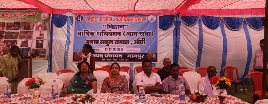 राष्ट्रीय ग्रामीण आजीविका मिशन (बिहान) के वार्षिक अधिवेशन एवं आम सभा का भव्य आयोजन ममता संकुल संगठन औंधी द्वारा आज आयोजित किया गया। इस अवसर पर जिला पंचायत अध्यक्ष एवं एकीकृत आदिवासी विकास परियोजना अध्यक्ष श्रीमती नम्रता सिंह मुख्य अतिथि के रूप में शामिल रहीं।