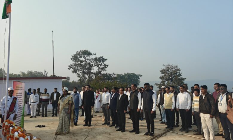 – अधिकारी-कर्मचारी कर्तव्य निष्ठा से करें दायित्वों का निर्वहन मोहला 26 जनवरी 2026। कलेक्टर श्रीमती तुलिका प्रजापति ने गणतंत्र दिवस पर्व पर कलेक्टोरेट में ध्वज फहराया। कलेक्टर श्रीमती प्रजापति ने राष्ट्रपिता महात्मा गांधी और छत्तीसगढ़ महतारी की प्रतिमा पर पुष्प अर्पित किया। उन्होंने सभी अधिकारियों एवं कर्मचारियों को गणतंत्र दिवस की शुभकामनाएं दी। इस अवसर पर विभिन्न विभागों के अधिकारी कर्मचारी उपस्थित रहें।