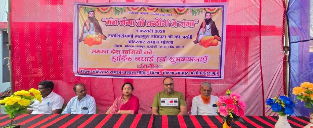 छोट-बड़ो सब सम बसे, रविदास रहे प्रसन्न’।। जिला अहिरवार समाज ने मोहला मे मनाया संत शिरोमणि गुरु रविदास की जन्म जयंती समरस समाज व वंचितों को सम्मान दिलाने के लिए आजीवन समर्पित रहे महान समाज सुधारक, दार्शनिक, कवि व संत शिरोमणि गुरु रविदास जी की जयंती के अवसर पर ऩगर भ्रमण कर भव्य शोभायात्रा निकाली गई पूजा अर्चना ध्वजारोहण करचित्र पर पुष्प अर्पित कर नमन किया।