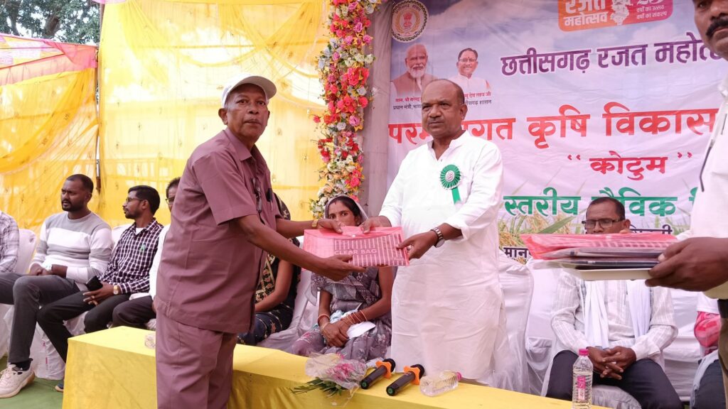 अंबागढ़ चौकी: परंपरागत कृषि विकास योजनांतर्गत “कोटूम” जिला स्तरीय जैविक किसान मेला का आयोजन मानपुर विकासखंड के ग्राम सीवनी में किया गया। जहां जिले भर से आए प्रगतिशील किसानों को जैविक खेती के विषय में जानकारी दिया गया। इस अवसर पर विधायक इंद्रशाह मंडावी, जनपद अध्यक्ष पुष्पा मंडावी, उपाध्यक्ष देवानंद कौशिक, सभापति रवेंद्र मांझी, राजू पोटाई, बृजबती धुर्वे, मंगतू कोमरे, मानसिंह टेकाम, किसान मित्र दौलत सिंह पोटाई, एनूक गाँवरे, मनहेर उईके, सरजू लाठिया, अमृत सोरी, भगत पुरामें, राजेंद्र, दिनेश, मनोहर, रोहित, रूपलाल, रामलाल धुर्वे सहित किसान साथी उपस्थित रहें।