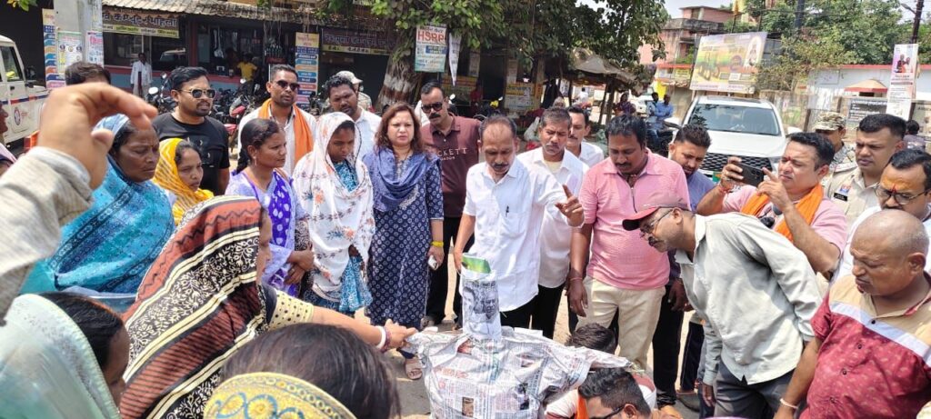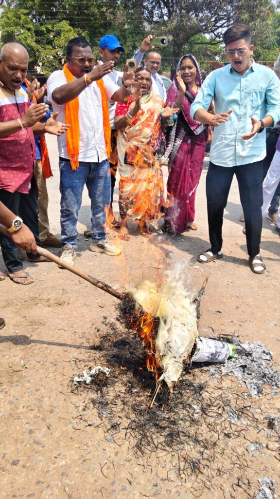 मोहला-मानपुर चौक में विपक्ष का पुतला दहन, नारी शक्ति वंदन अधिनियम के समर्थन में भाजपा का प्रदर्शन