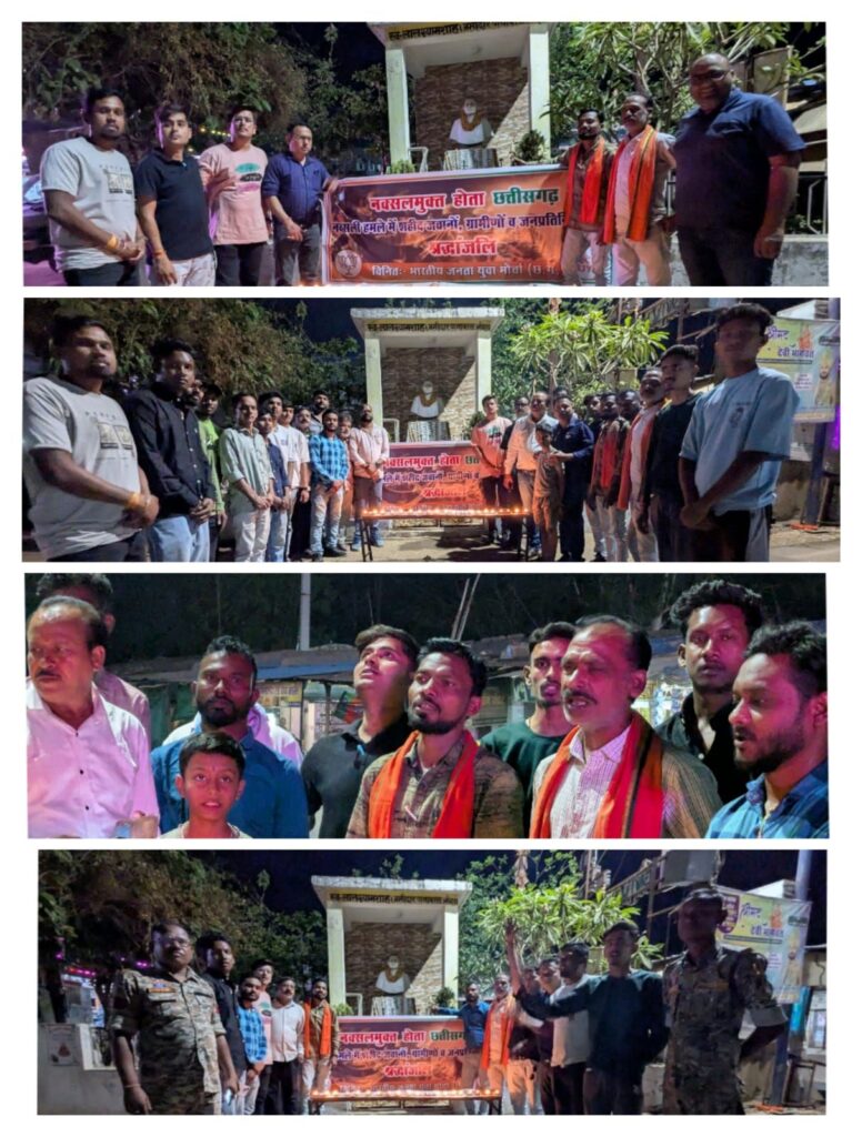 छत्तीसगढ़ के नक्सल मुक्त होने की ऐतिहासिक उपलब्धि के उपलक्ष्य में जिला मुख्यालय मोहला स्थित जयस्तंभ चौक में भारतीय जनता युवा मोर्चा द्वारा श्रद्धांजलि एवं दीपदान कार्यक्रम का आयोजन किया गया। कार्यक्रम में शहीद वीर जवानों को भावभीनी श्रद्धांजलि अर्पित की गई।