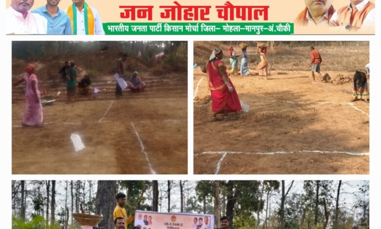 मानपुर। भारतीय जनता पार्टी के प्रदेश अध्यक्ष किरण सिंह देव एवं किसान मोर्चा के प्रदेश अध्यक्ष आलोक सिंह ठाकुर के निर्देशानुसार, तथा जिला भाजपा अध्यक्ष दिलीप वर्मा एवं किसान मोर्चा जिला अध्यक्ष अरुण यादव के मार्गदर्शन में दिनांक 25 फरवरी 2026 को मानपुर मंडल में “विकसित भारत–गारंटी फॉर रोजगार एंड आजीविका मिशन–ग्रामीण” के अंतर्गत जन जोहर चौपाल का आयोजन किया गया।