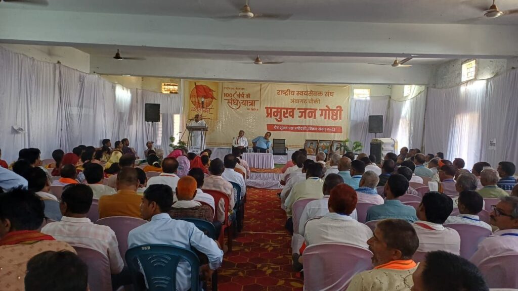 राष्ट्रीय स्वयंसेवक संघ के शताब्दी वर्ष के अंतर्गत होने वाले विभिन्न आयोजनों की श्रृंखला में एक महत्वपूर्ण कार्यक्रम प्रमुख जन गोष्ठी का आयोजन अंबागढ़ चौकी में सम्पन्न हुआ। जिसमें पांच विकासखंड डोंगरगांव, छुरिया, मोहला, मानपुर एवं अं चौकी से विभिन्न सत्रह श्रेणी के दो सौ से अधिक प्रमुखजनों ने भाग लिया। इस गोष्ठी के मुख्यवक्ता राष्ट्रीय स्वयंसेवक संघ मध्य क्षेत्र के प्रचारक प्रमुख शिवराम समदरिया थे, वही विभाग संघचालक राजेश ताम्रकार एवं सह जिला संघ चालक मनहरण पिथौरा मंचस्थ थे। आयोजन मे उपस्थित प्रमुख जनों को संघ शताब्दी वर्ष के विभिन्न गतिविधियों जिसमें विजयादशमी उत्सव, गृह संपर्क अभियान, हिंदू सम्मेलन, युवा संवाद जैसे सम्पन्न हुए कार्यक्रमों की जानकारी तथ्यात्मक और विस्तार से दी गई।