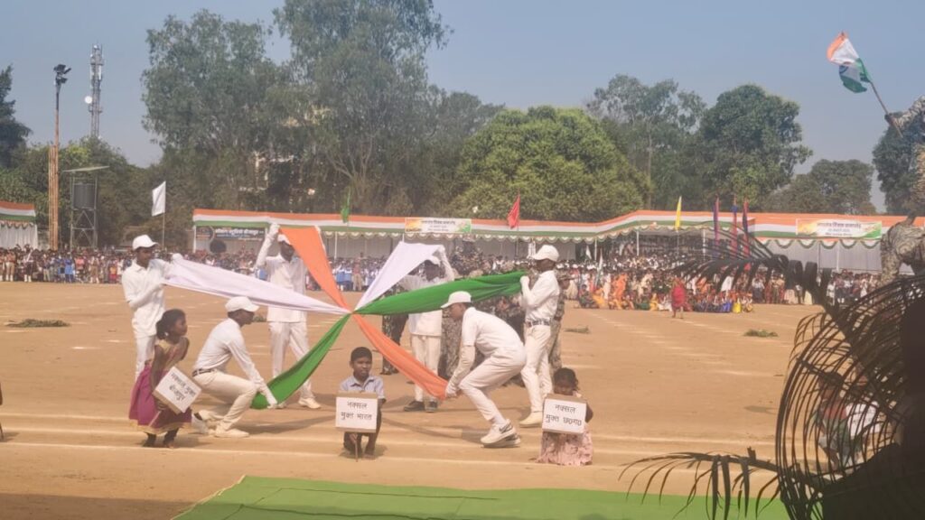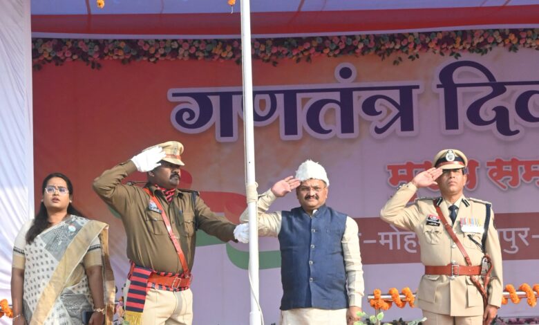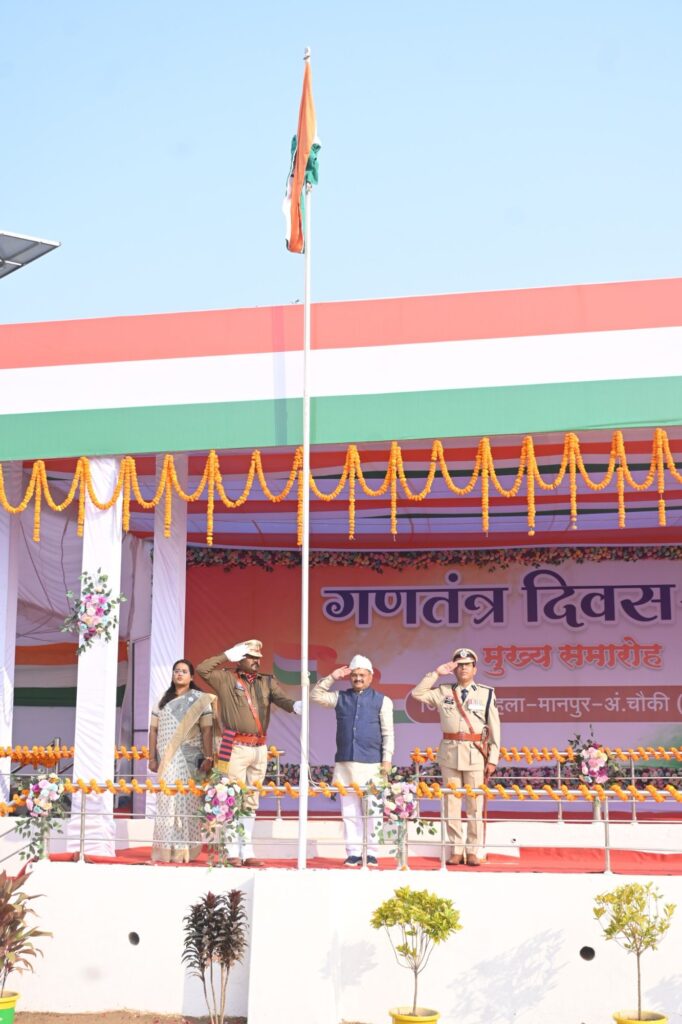 मोहला, 26 जनवरी 2026। जिले में 77वां गणतंत्र दिवस हर्षोल्लास के साथ मनाया गया। जिला मुख्यालय के मिनी स्टेडियम में आयोजित मुख्य समारोह में लोकसभा सांसद राजनांदगांव श्री संतोष पाण्डेय ने ध्वजारोहण किया। इसके पश्चात राष्ट्रगान, मार्चपास्ट एवं सलामी दी गई।