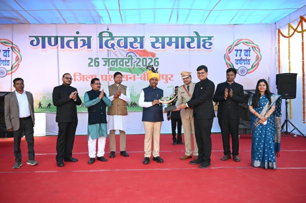 विभिन्न विभागों द्वारा शासकीय योजनाओं पर आधारित झांकियां निकाली गईं, जिसमें कृषि विभाग को प्रथम, महिला एवं बाल विकास विभाग को द्वितीय तथा स्कूल शिक्षा विभाग को तृतीय स्थान प्राप्त हुआ।
