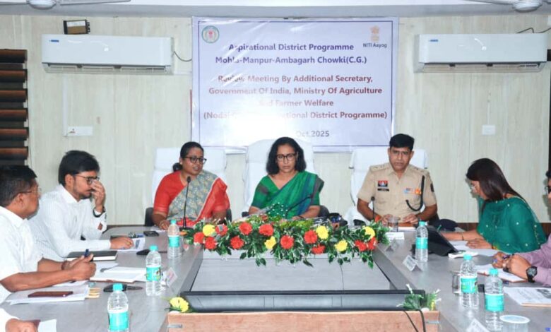 स्थानीय उत्पादों के प्रसंस्करण में करें फोकस, रोजगार की अपार संभावनाएं — डॉ. मनिन्दर कौर मोहला, 15 अक्टूबर 2025। कृषि एवं किसान कल्याण मंत्रालय की अतिरिक्त सचिव एवं आकांक्षी जिला कार्यक्रम की नोडल अधिकारी डॉ. मनिन्दर कौर ने आज कलेक्टोरेट सभाकक्ष में समीक्षा बैठक ली। बैठक में कलेक्टर श्रीमती तुलिका प्रजापति, सीईओ जिला पंचायत श्रीमती भारती चंद्राकर व विभागीय अधिकारी…