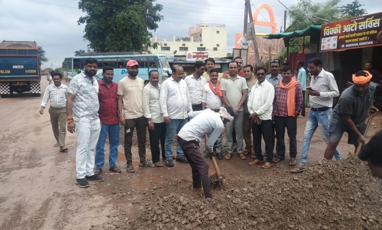 रोड़ मे हुए बड़े बड़े गढ्ढो से होने वाले हादसे को रोकने के लिए