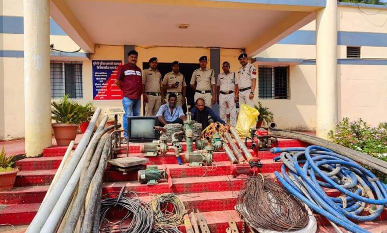 मुंगेली : जिले में सहित आस-पास के क्षेत्रों में लगातार पम्प, ट्यूबवेल, फैसिंग वायर, केबल और की चोरी की शिकायत पर मुंगेली पुलिस द्वारा अज्ञात आरोपी के विरूद्ध अपराध क्रमांक 501/2022 धारा 379 भादस कायम कर विवचेना में लिया गया। विवेचना के दौरान मुखबिरों की सूचना पर तत्काल थाना सिटी कोतवाली मुंगेली, थाना लोरमी एवं चौकी चिल्फी की संयुक्त टीम द्वारा संदेही आरोपी जलेश उर्फ कोलिहा एवं शत्रुहन चतुर्वेदी दोनो निवासी चरनी टोला, लोरमी को गिरफ्तार किया एवं सघन पूछताछ करने पर थाना मुंगेली क्षेत्र के साथ-साथ, थाना लोरमी, थाना फास्टरपुर, चौकी चिल्फी क्षेत्र में भी चोरी करना स्वीकार किये।