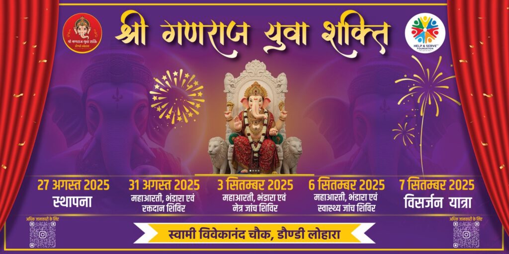 डौडीं लोहारा में गणराज युवा विकृति गणेशोत्सव के युवाओं द्वारा मुख्य मार्ग पर विशाल व भव्य मंडप द्वारा गणेश की प्रतिमा स्थापित की गई व आयोजन समिति के युवाओं द्वारा स्वास्थय शिविर के साथ रक्तदान शिविर का आयोजन होना है नगर के युवाओं का सराहनीय पहल से नगर में हर्ष का विषय है गणराज समिति के सदस्यों में अरिहंत भंसाली,बंसल जैन,अंश ठाकुर,हर्षवीर कसार,नमन लोढ़ा,दिव्य जैन,शवल जैन,संयम जैन,अक्षत जैन,तथा ऋषी जैन शामिल है