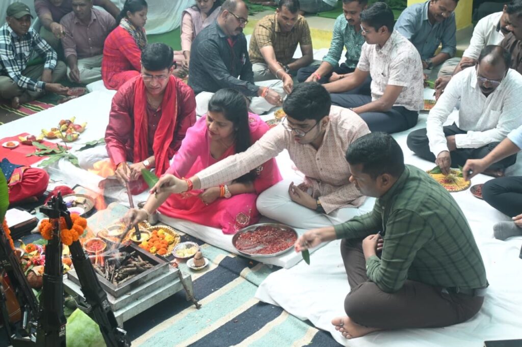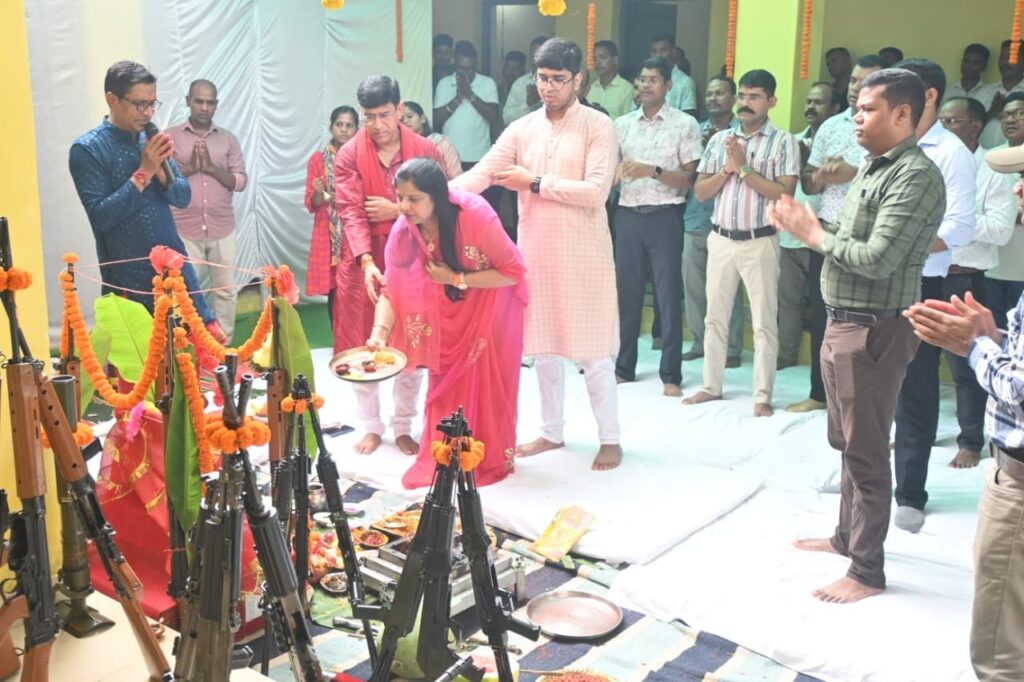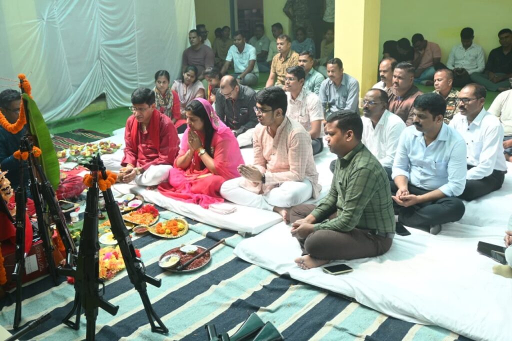 ▪️ पुलिस लाईन में आयोजित शस्त्र पूजा में सपरिवार सम्मिलित होकर विधिविधान से किए पूजा अर्चनादिनांक 02.10.2025 विजयादशमी पर्व पर परम्परागत पुलिस लाईन मोहला में शस्त्र पूजा कार्यक्रम आयोजित की गई। पुलिस अधीक्षक श्री वाय पी सिंह (भापुसे) सपरिवार शस्त्र पूजा में सम्मिलित होकर विधिविधान से पुलिस शस्त्रागार में उपलब्ध शस्त्रों एवं वाहनों की पूजा अर्चना किए।