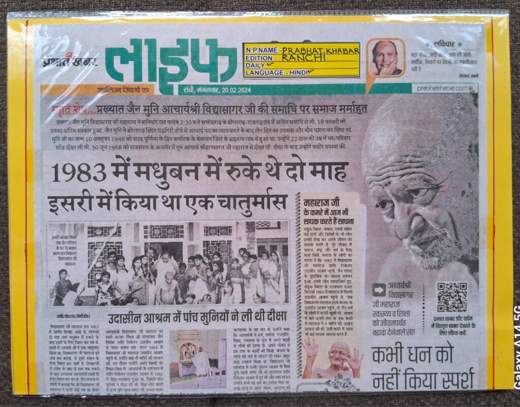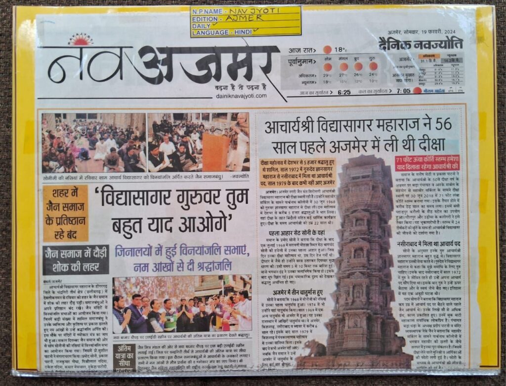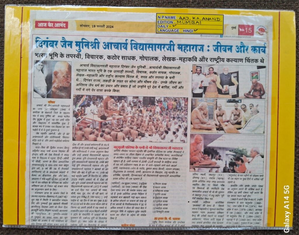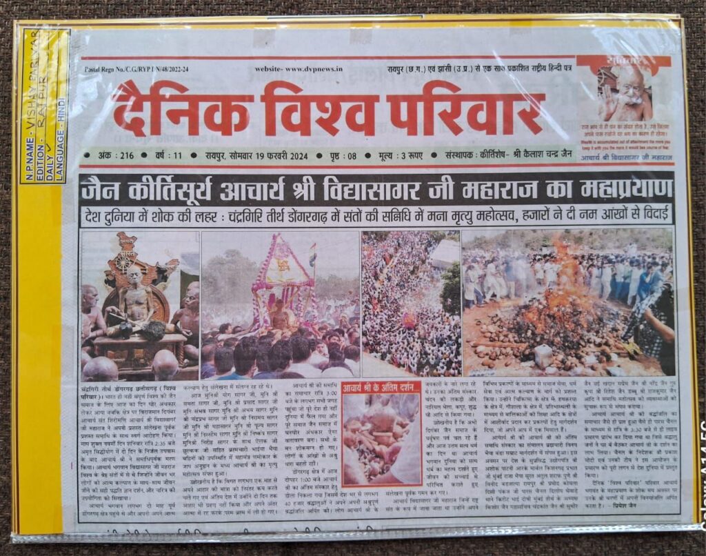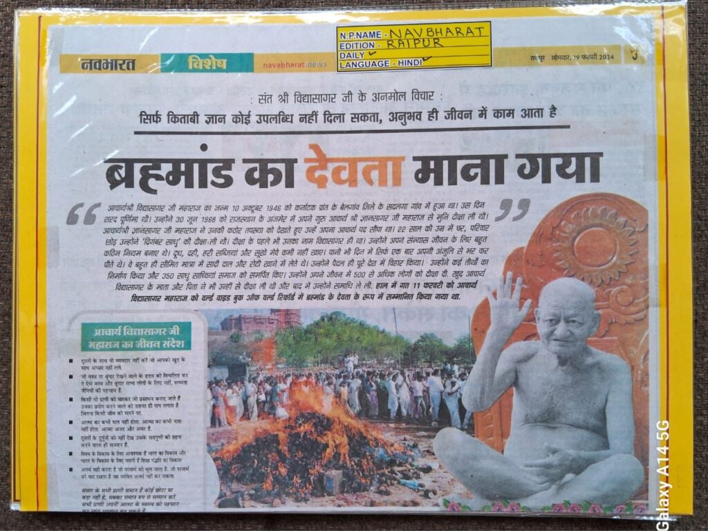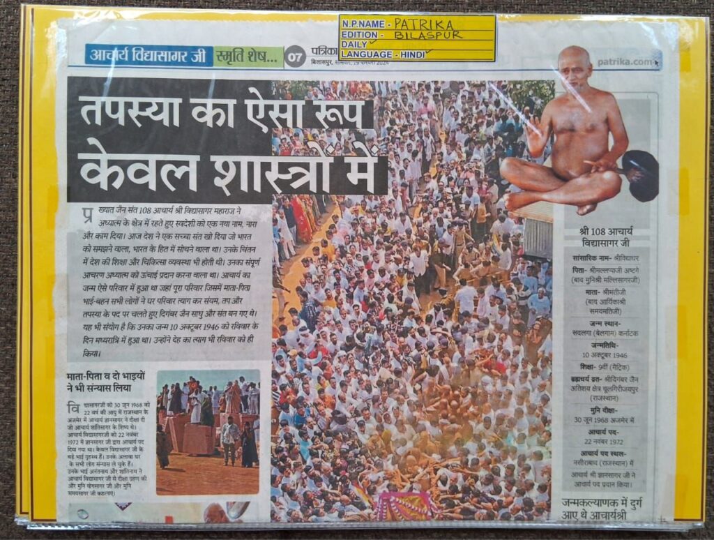 आचार्य विद्यासागर पत्रकारिता पुरस्कार से सम्मानित होंगे