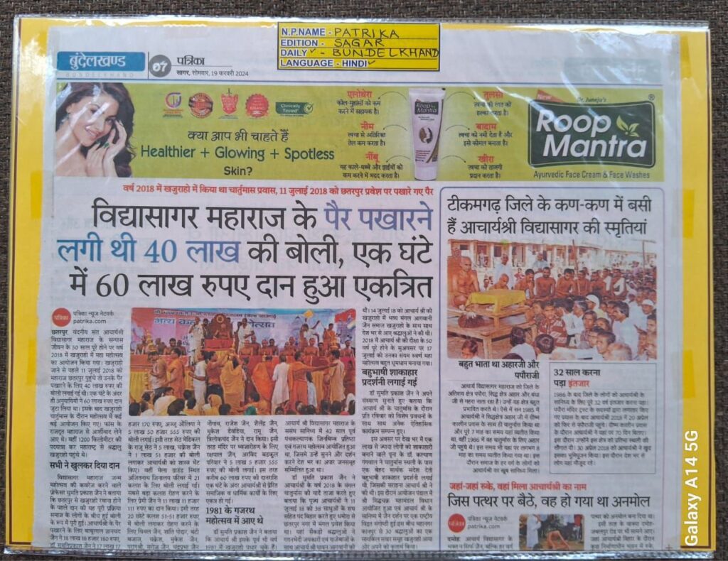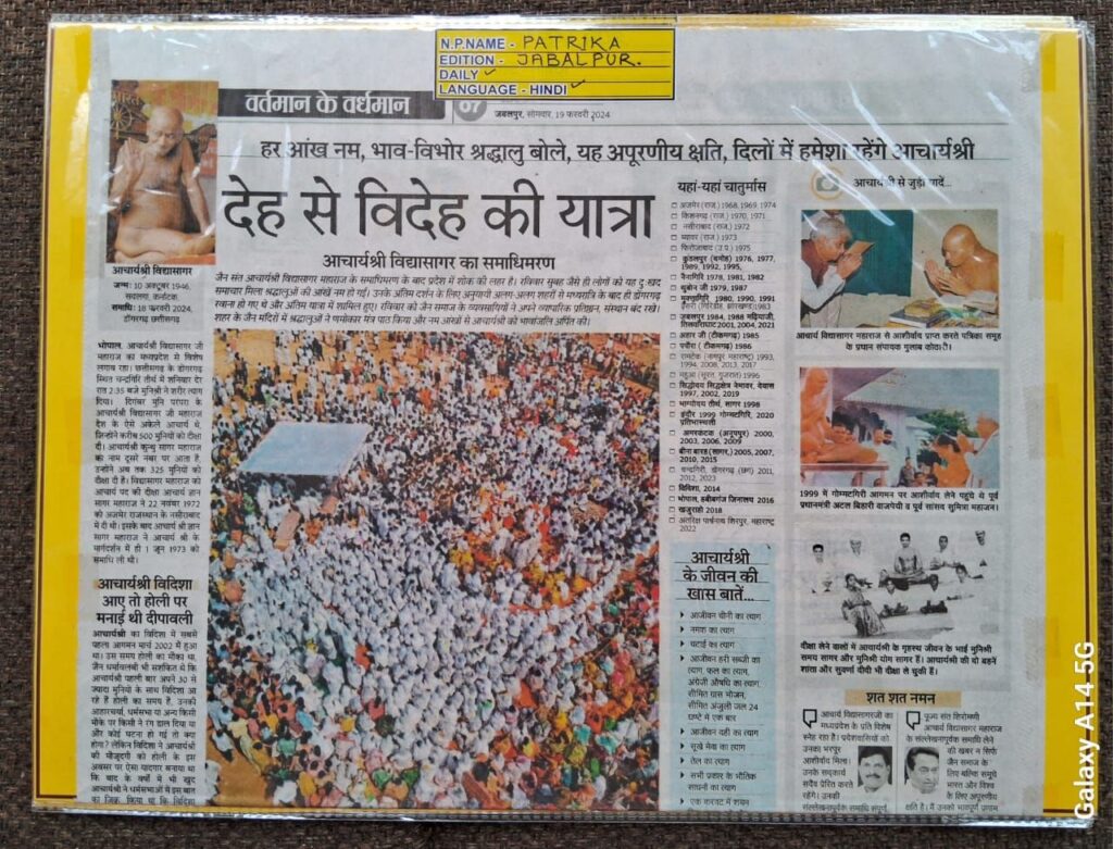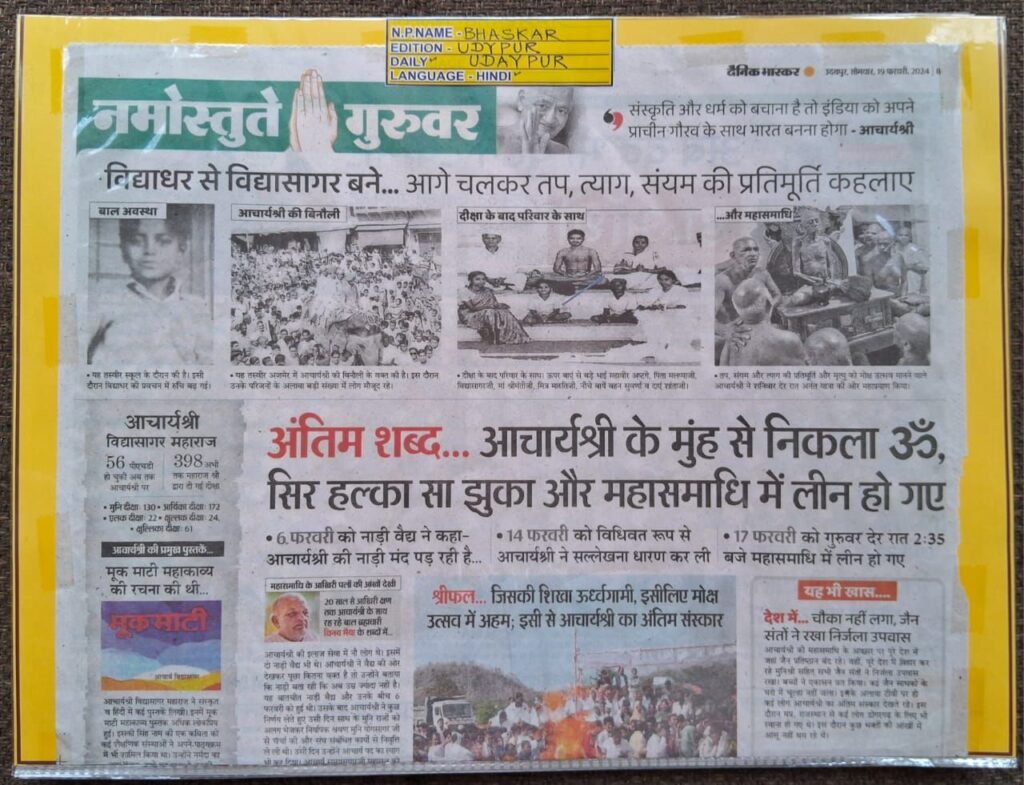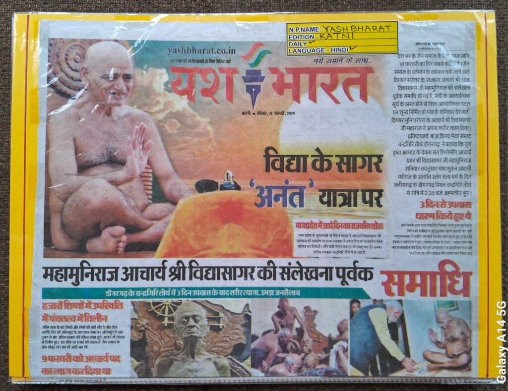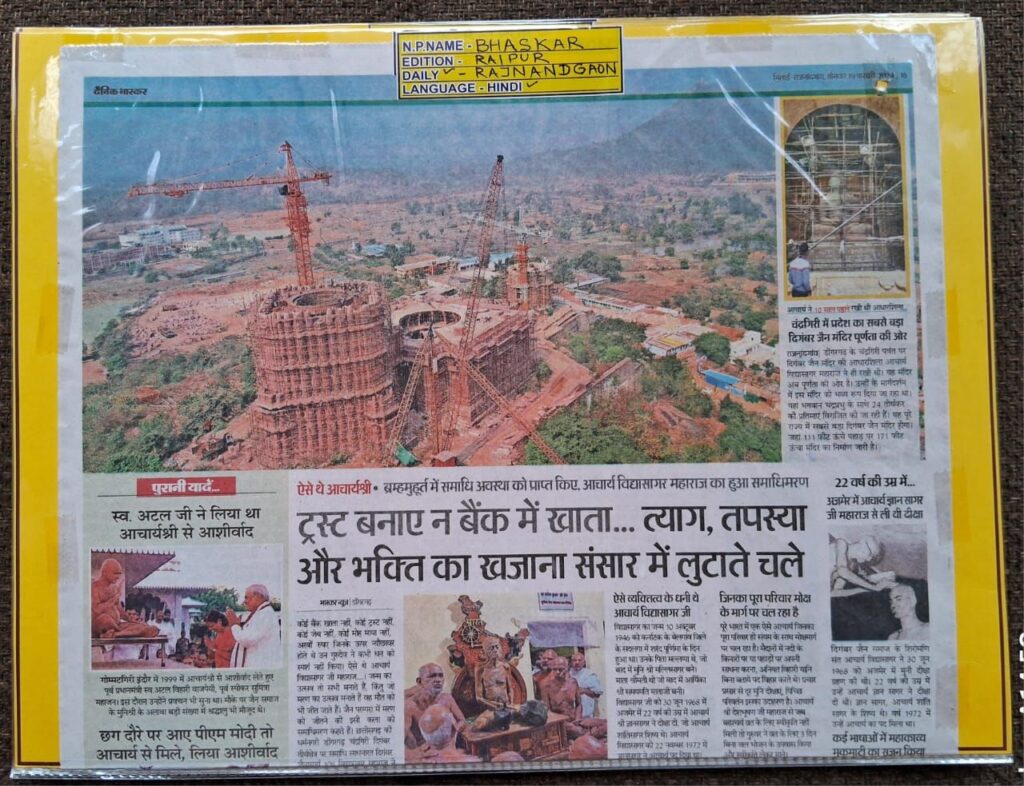 आचार्य विद्यासागर पत्रकारिता पुरस्कार से सम्मानित होंगे