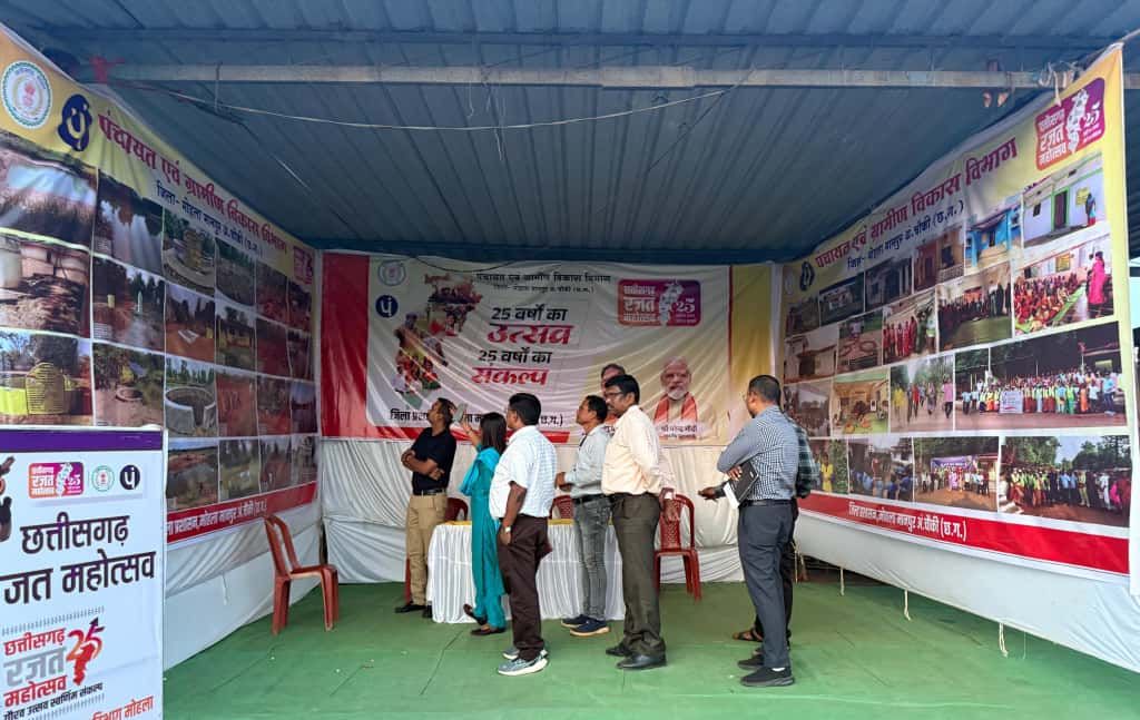 – पंचायत एवं ग्रामीण विकास विभाग द्वारा 26 अक्टूबर तक आयोजित होंगे विविध कार्यक्रम मोहला 13 अक्टूबर 2025। पंचायत एवं ग्रामीण विकास विभाग द्वारा रजत जयंती के अवसर पर 13 से 26 अक्टूबर 2025 तक विविध कार्यक्रमों का आयोजन किया जा रहा है। इसी कड़ी में आज जिला मुख्यालय मोहला के दुर्गा चौक में प्रथम दिवस पर विभाग द्वारा गत 25 वर्षों में किए गए विकास कार्यों की जिला स्तरीय छायाचित्र प्रदर्शनी लगाई गई। जिसका अवलोकन जिला पंचायत सीईओ श्रीमती भारती चंद्राकर एवं अपर कलेक्टर श्री जीआर मरकाम ने किया। प्रदर्शनी में विभागीय योजनाओं की झलक प्रस्तुत की गई है, जो एक सप्ताह तक आम जनता के लिए खुली
