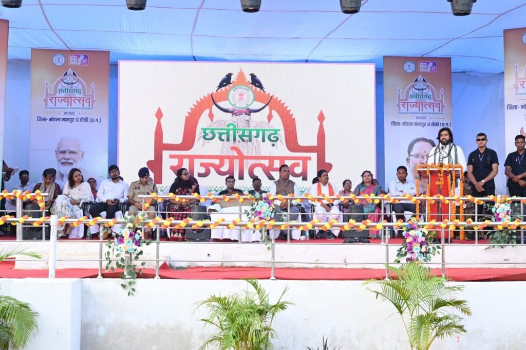 – स्थानीय कलाकारों एवं स्कूली बच्चों ने दी मनमोहक सांस्कृतिक कार्यक्रम की प्रस्तुति मोहला 2 नवंबर 2025। छत्तीसगढ़ राज्य स्थापना के 25 वर्ष पूर्ण होने के उपलक्ष्य में रजत जयंती वर्ष के अवसर पर मिनी स्टेडियम मोहला में जिला स्तरीय राज्योत्सव कार्यक्रम का भव्य आयोजन किया गया। कार्यक्रम का शुभारंभ कौशल विकास, तकनीकी शिक्षा एवं रोजगार तथा अनुसूचित जाति विकास मंत्री श्री गुरु खुशवंत साहेब ने छत्तीसगढ़ महतारी की शैलचित्र पर माल्यार्पण एवं पूजा-अर्चना कर किया। इस अवसर पर तकनीकी शिक्षा एवं रोजगार मंत्री श्री साहेब ने जिलेवासियों को राज्य स्थापना दिवस की बधाई देते हुए कहा कि आज का दिन हम सभी के लिए गौरव का प्रतीक है। उन्होंने कहा कि प्रधानमंत्री श्री नरेन्द्र मोदी की गारंटी और मुख्यमंत्री श्री विष्णुदेव साय के सुशासन में प्रदेश निरंतर प्रगति की नई ऊँचाइयाँ छू रहा है। तकनीकी शिक्षा एवं रोजगार मंत्री श्री साहेब ने कहा कि मुख्यमंत्री श्री विष्णुदेव साय के नेतृत्व में प्रदेश सरकार जनकल्याणकारी योजनाओं का प्रभावी संचालन कर रही है। कृषि प्रधान राज्य छत्तीसगढ़ में ग्रामीण अर्थव्यवस्था को सशक्त करने के लिए लगातार ठोस कदम उठाए जा रहे हैं। उन्होंने बताया कि राज्य सरकार किसानों के हितों को ध्यान में रखते हुए धान की खरीदी 3100 रुपये प्रति क्विंटल के समर्थन मूल्य पर प्रति एकड़ 21 क्विंटल की दर से कर रही है। महिलाओं के आर्थिक सशक्तिकरण के लिए महतारी वंदन योजना जैसी योजनाएँ संचालित की जा रही हैं, वहीं जरूरतमंद परिवारों के लिए आवास निर्माण और महत्वपूर्ण सड़क परियोजनाओं को मंजूरी दी गई है। इन पहलों से प्रदेश विकास की नई ऊँचाइयों की ओर अग्रसर है। तकनीकी शिक्षा एवं रोजगार मंत्री श्री साहेब ने कहा कि राज्य सरकार का बजट सभी वर्गों के विकास को केंद्र में रखकर तैयार किया जा रहा है। गरीबों को पक्का आवास, युवाओं को शिक्षा और रोजगार, तथा अन्नदाताओं को उचित मूल्य देना शासन की प्राथमिकता रही है। राज्य में शिक्षा की गुणवत्ता बढ़ाने के लिए शासकीय विद्यालयों का उन्नयन और युक्तियुक्तकरण किया गया है। वहीं 14 मेडिकल कॉलेजों के संचालन के साथ नए नर्सिंग कॉलेजों की स्थापना की जा रही है, जिससे युवाओं को चिकित्सा शिक्षा और रोजगार के अवसर मिलेंगे तथा स्वास्थ्य सेवाओं का भी विस्तार होगा। तकनीकी शिक्षा एवं रोजगार मंत्री श्री साहेब ने कहा कि प्रधानमंत्री श्री मोदी के नेतृत्व और मुख्यमंत्री श्री विष्णुदेव साय के मार्गदर्शन में प्रदेश को नक्सलमुक्त बनाने की दिशा में ठोस कार्य किए जा रहे हैं। सरकार का उद्देश्य है कि दूरस्थ अंचलों तक शिक्षा, स्वास्थ्य और रोजगार की सुविधाएँ पहुँचे। उन्होंने कहा, जब हम छत्तीस