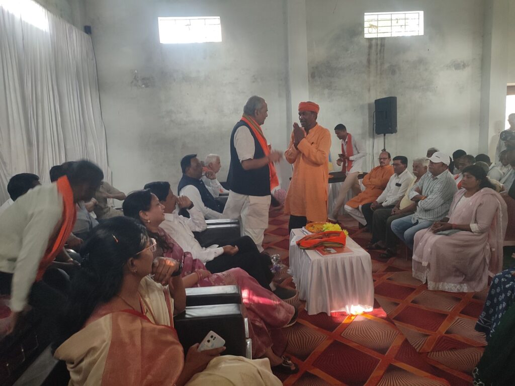 अतिथियों का पुष्प गुच्छ व गमझा भेंट कर स्वागत किया गया।