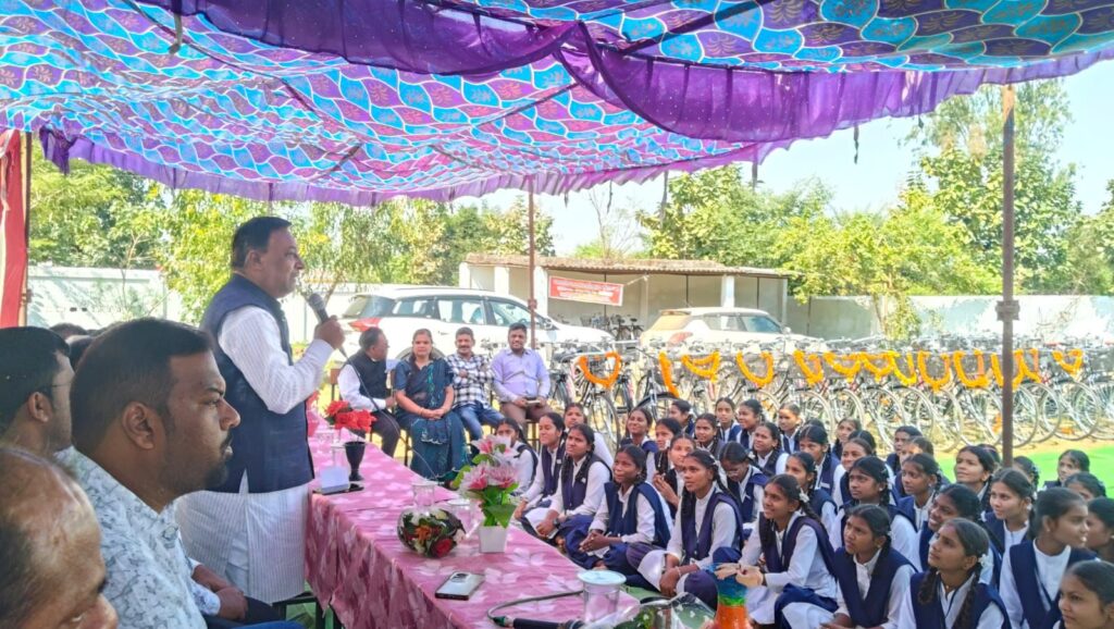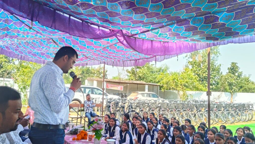कार्यक्रम के दौरान छात्राओं को सरस्वती साइकिल योजना के तहत साइकिल वितरित की गई। इस अवसर पर श्री दिलीप वर्मा जी ने अपने उद्बोधन में कहा कि बालिकाओं की शिक्षा ही समाज के उज्जवल भविष्य की नींव है। उन्होंने कहा कि प्रधानमंत्री और मुख्यमंत्री के नेतृत्व में बेटियों की शिक्षा को बढ़ावा देने के लिए निरंतर योजनाएँ चलाई जा रही हैं।