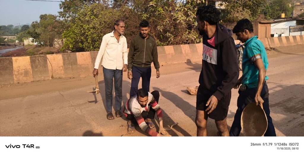 रहुल शर्मा, लक्ष्मण साहु, नंकु साहु, विपलव परमेश्वर निषाद, अजय सारथी, अमरदास देवा, नंद सजु यादव, मोहर्रम हुसेन, निखिल हुमन निषाद, रवि यारदा ने अथक प्रयास कर गड्ढे की मरम्मत कर गड्ढे को पाटा गया। इनके प्रयास से अब इस मार्ग पर यातायात सुरक्षित हो गया है।