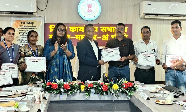 भारत निर्वाचन आयोग के निर्देशानुसार जिले में निर्वाचक नामावलियों के विशेष गहन पुनरीक्षण (एसआईआर) अंतर्गत गणना पत्रक वितरण एवं डिजिटाइजेशन कार्य सुचारू रूप से जारी है। इसी क्रम में आज कलेक्टोरेट सभाकक्ष में आयोजित कार्यक्रम में प्रभारी सचिव श्री पी. एस. एल्मा द्वारा शत-प्रतिशत गणना पत्रक वितरण एवं डिजिटाइजेशन कार्य में उत्कृष्ट प्रदर्शन करने वाले बीएलओ, सुपरवाइजर तथा अभिहित अधिकारियों को प्रशस्ति पत्र प्रदान कर सम्मानित किया गया।
