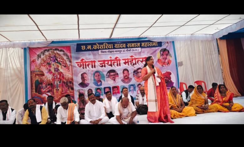 छत्तीसगढ़ कोसरिया यादव सामाज महासभा द्वारा मोहला के गौंडवाना भवन के मैदान में गीता जंयती महोत्सव का भव्य आयोजन किया गया। मोहला के चौक चौराहे पर भव्य क्लब शोभायात्रा निकाली गई। भगवान श्री कृष्ण के छाया चित्र पर दीप प्रज्ज्वलित कर व पूजा अर्चना कर गीता जंयती महोत्सव का शुभारंभ किया गया।