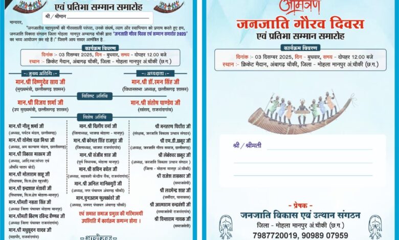 – जनजाति गौरव दिवस एवं प्रतिभा सम्मान समारोह 3 दिसम्बर को